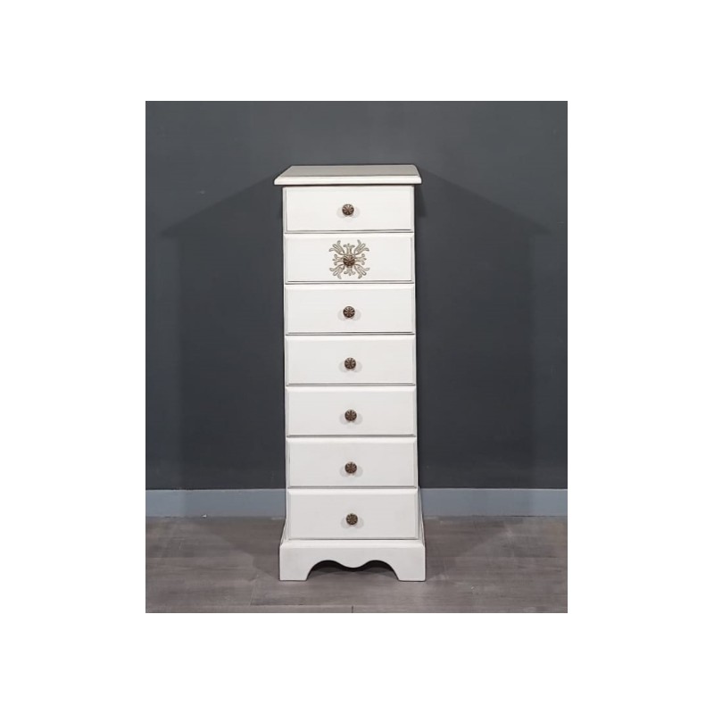 Cassettiera a 7 cassetti ideale per ogni ambiente notte e giorno, struttura in legno verniciatura bianco opaco, cassetti scorrevoli con guide metalliche, pomo in metallo, da assemblare.